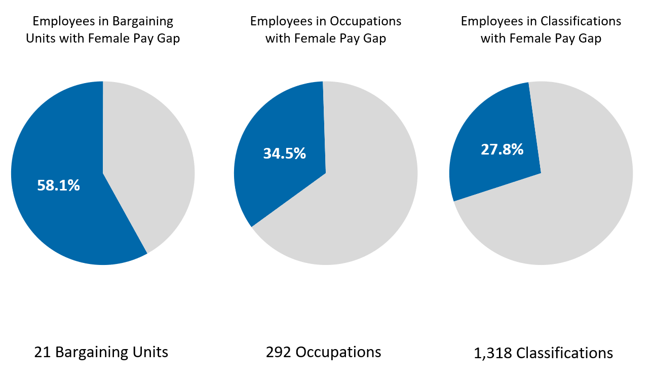 - Nearly 42 percent of rank-and-file employees were in classifications with no gender pay gap