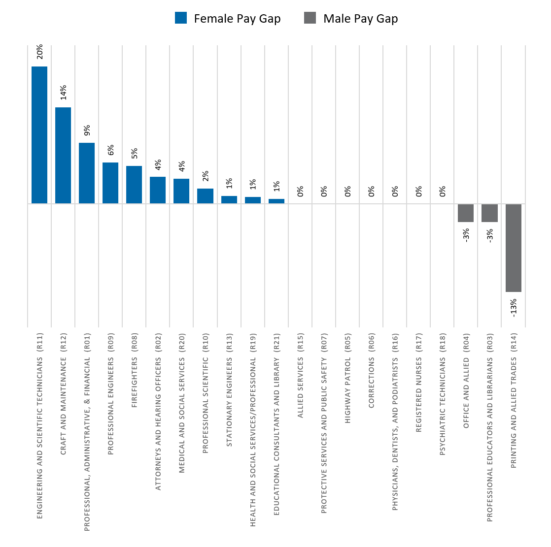 - The remaining rank-and-file employees were distributed fairly even between classifications with a female pay gap or a male pay gap