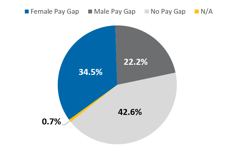 - Pay gaps were rounded to the whole percent, so a difference in median pay between genders of less than half a percent (0.5%) was not considered a pay gap. ↩