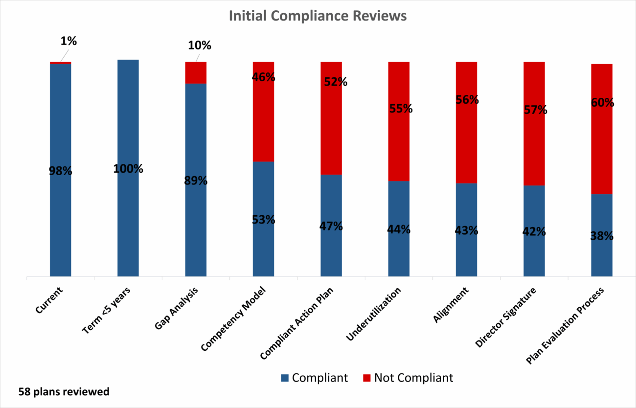 CalHR reviewed each current plan for compliance with CalHR Policy 2901. Here are the levels of compliance with the policy components.